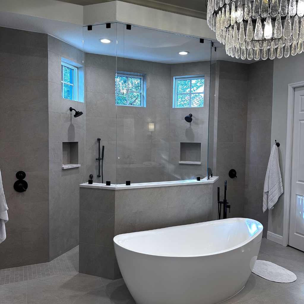 Floors, walls, and showers — from classic ceramic to premium porcelain and marble.