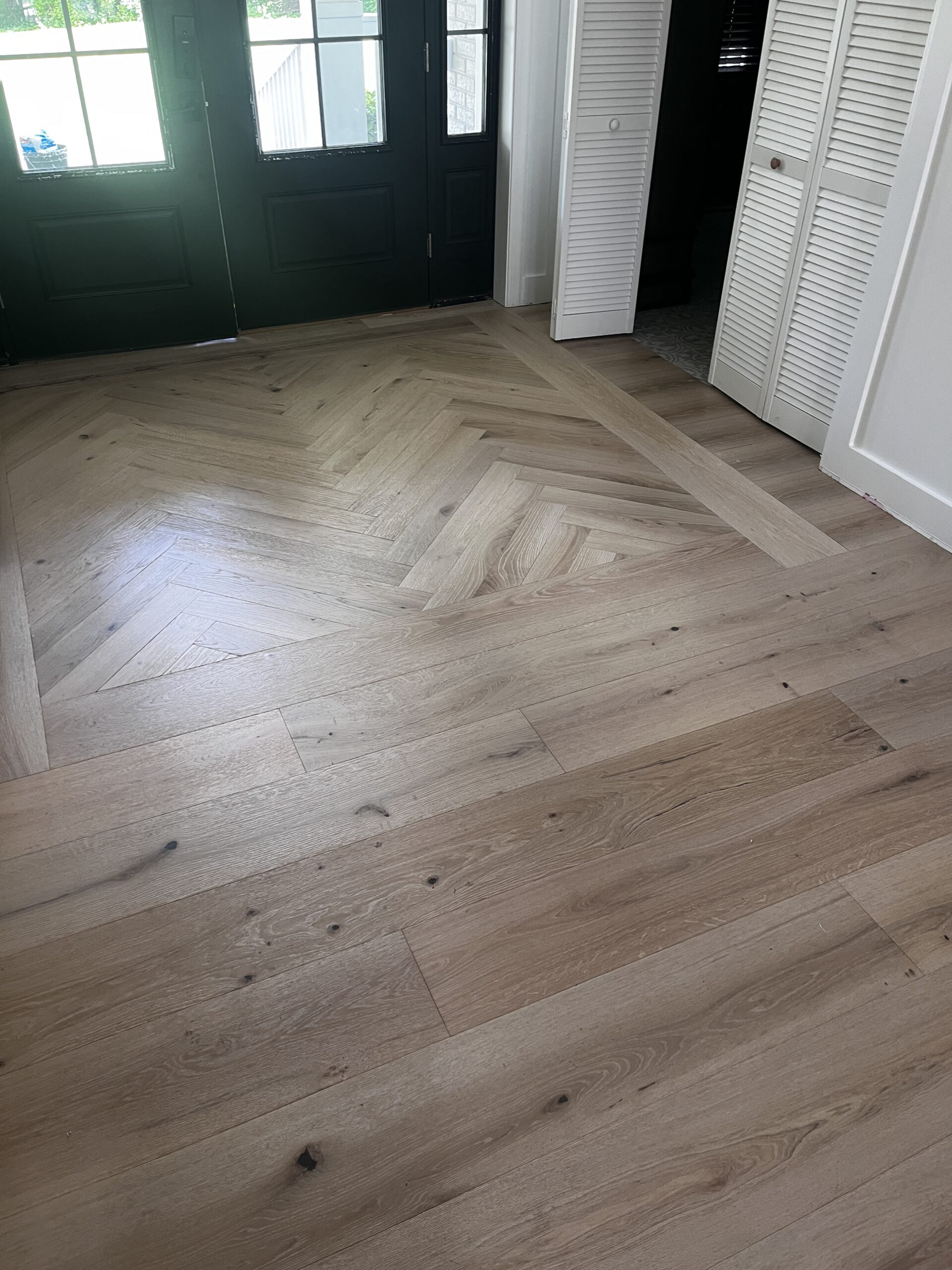 Solid and engineered wood floors — precise layouts, smooth transitions, and premium finishing.